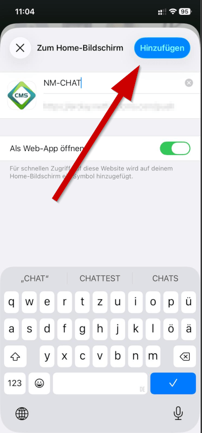 Die Webseite erscheint jetzt als App-Icon auf dem Homescreen